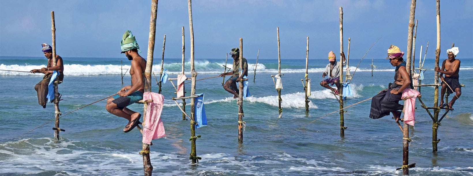 La pêche sur échasses est une méthode traditionnelle propre à la côte sud du Sri Lanka. Les pêcheurs, perchés sur des perches en bois plantées dans les eaux peu profondes, lancent leurs lignes à la mer. Cette pratique ancestrale, transmise de génération en génération, offre un spectacle saisissant au lever et au coucher du soleil. Elle demeure à la fois un moyen de subsistance et un symbole culturel du patrimoine côtier sri-lankais.