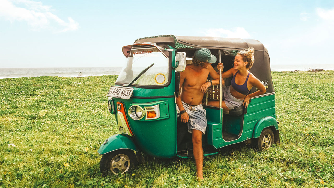 Le moyen le plus simple de se déplacer au Sri Lanka et de s'immerger dans la vie locale est sans conteste le tuk-tuk. Vous pouvez y fixer vos planches de surf (c'est désormais interdit sur un cyclomoteur) et transporter jusqu'à trois personnes en plus du conducteur.