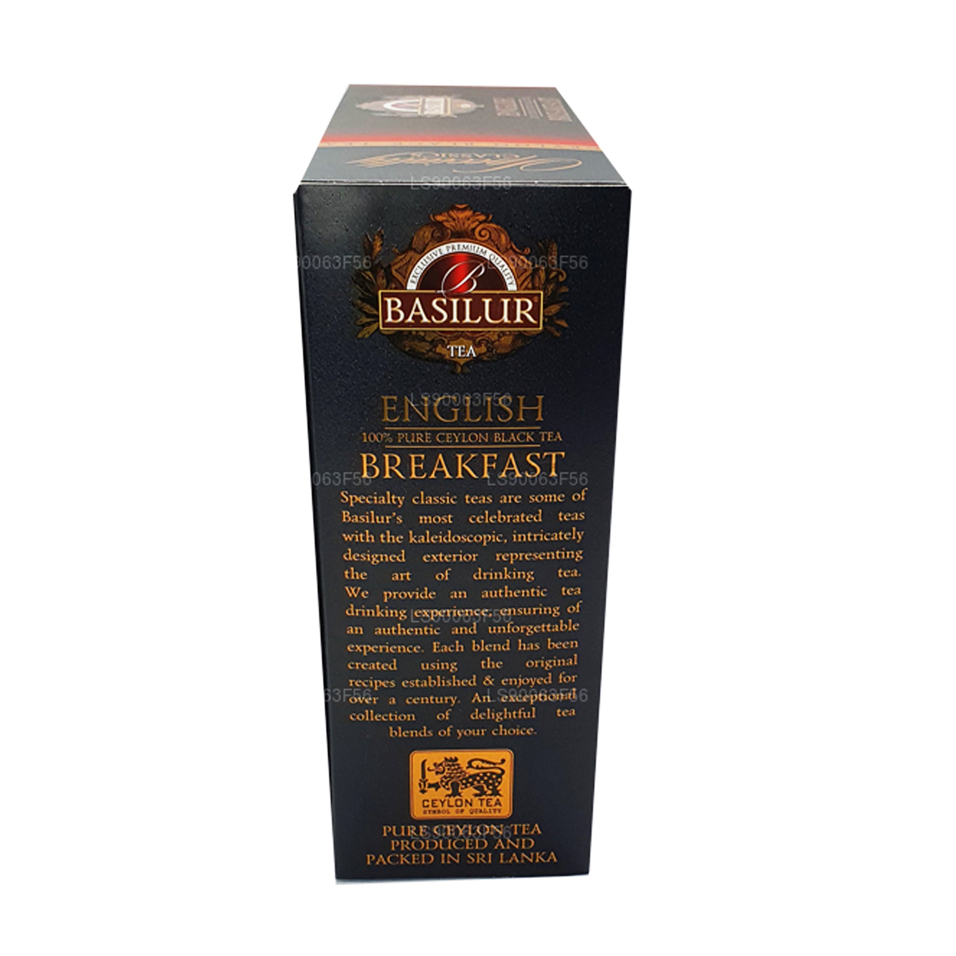 (SKU : LS90063F56) Légende de tous les thés classiques, l'English Breakfast Tea est l'un des thés les plus populaires au monde. Redéfinissant la culture du thé, Basilur vous propose des thés haut de gamme pour le petit-déjeuner de haute qualité qui vous permettront de vous rafraîchir et de vous satisfaire tout au long de la journée. Cette gamme de thé noir de Ceylan pur est un mélange riche, corsé et robuste, qui est souvent apprécié avec du lait et du sucre