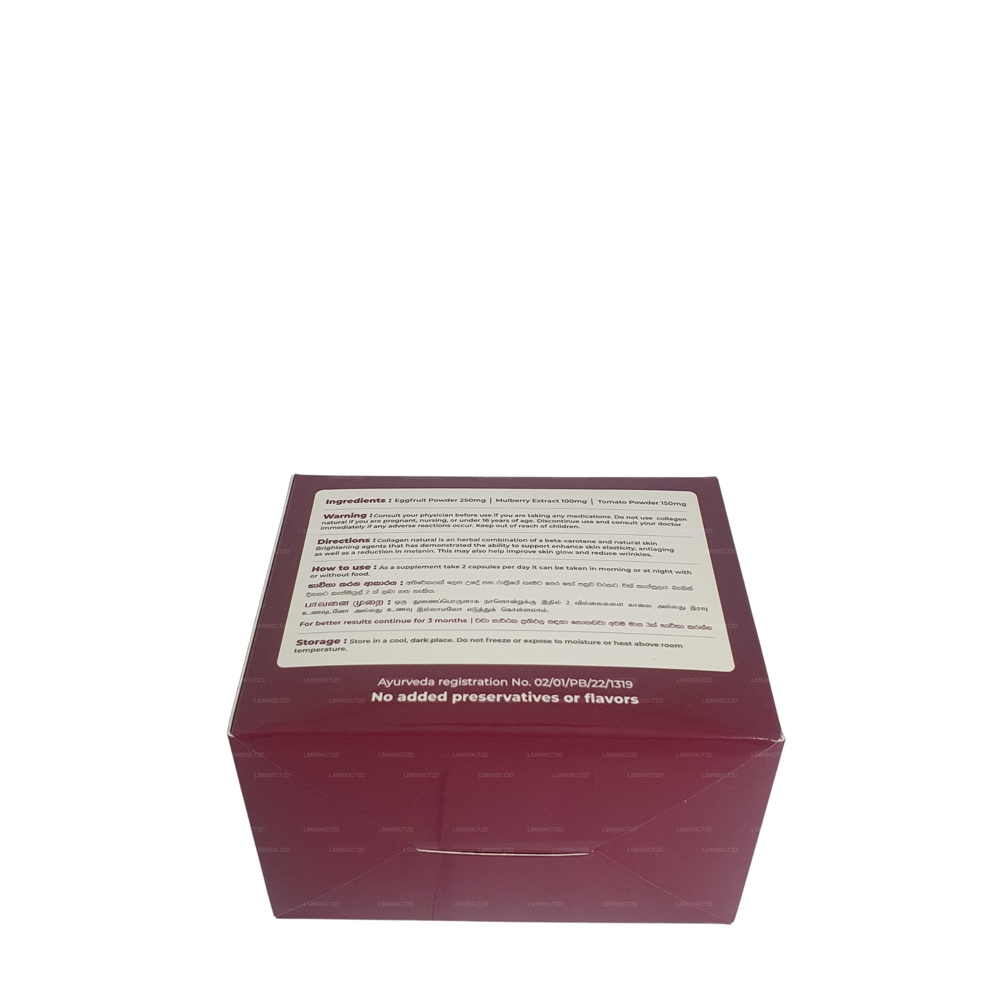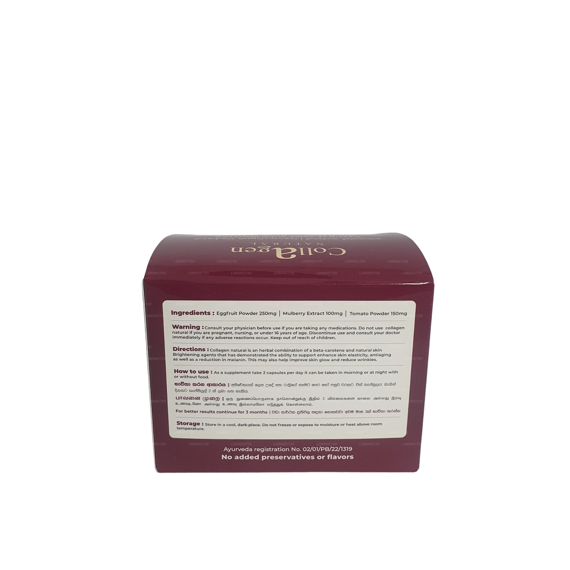 Avertissement : Consultez votre médecin avant utilisation si vous prenez des médicaments. Ne pas utiliser Collagen natural si vous êtes enceinte, allaitez ou avez moins de 18 ans. Arrêtez l'utilisation et consultez immédiatement votre médecin si des effets indésirables surviennent.