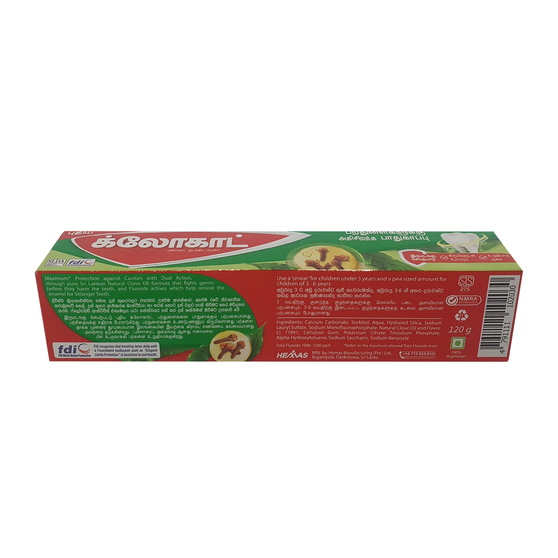 Clogard Cavity Protection combines the power of naturally trusted Sri Lankan Clove Oil and scientifically proven fluoride to provide maximum protection against cavities. The unique dual-action formula fights germs before they can harm teeth and helps restore enamel for stronger, healthier teeth. Clogard offers effective cavity prevention while ensuring a refreshing, natural experience with its mild clove oil flavor. For children under 3 years, use a smear, and for children 3-6 years, use a pea-sized amount. Clogard is your trusted partner for cavity protection and long-term oral health.