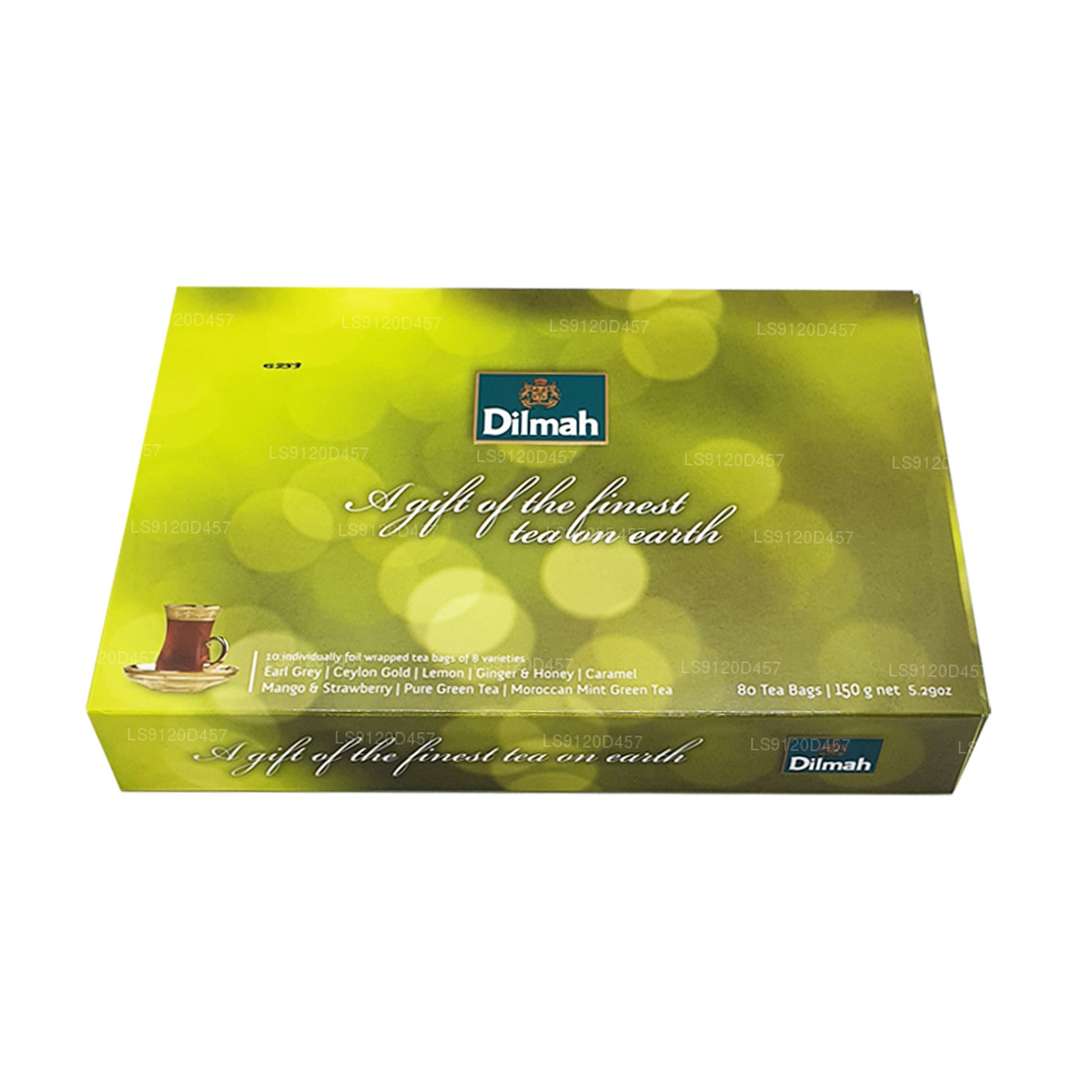 (SKU : LS9120D457) Une collection de cadeaux comprenant 10 sachets de thé chacun de Ceylon Gold, Earl Grey, Carmel, Lemon, Ginger & Honey, Mangue et fraise, Thé vert pur et Thé vert Moroccan Mint.