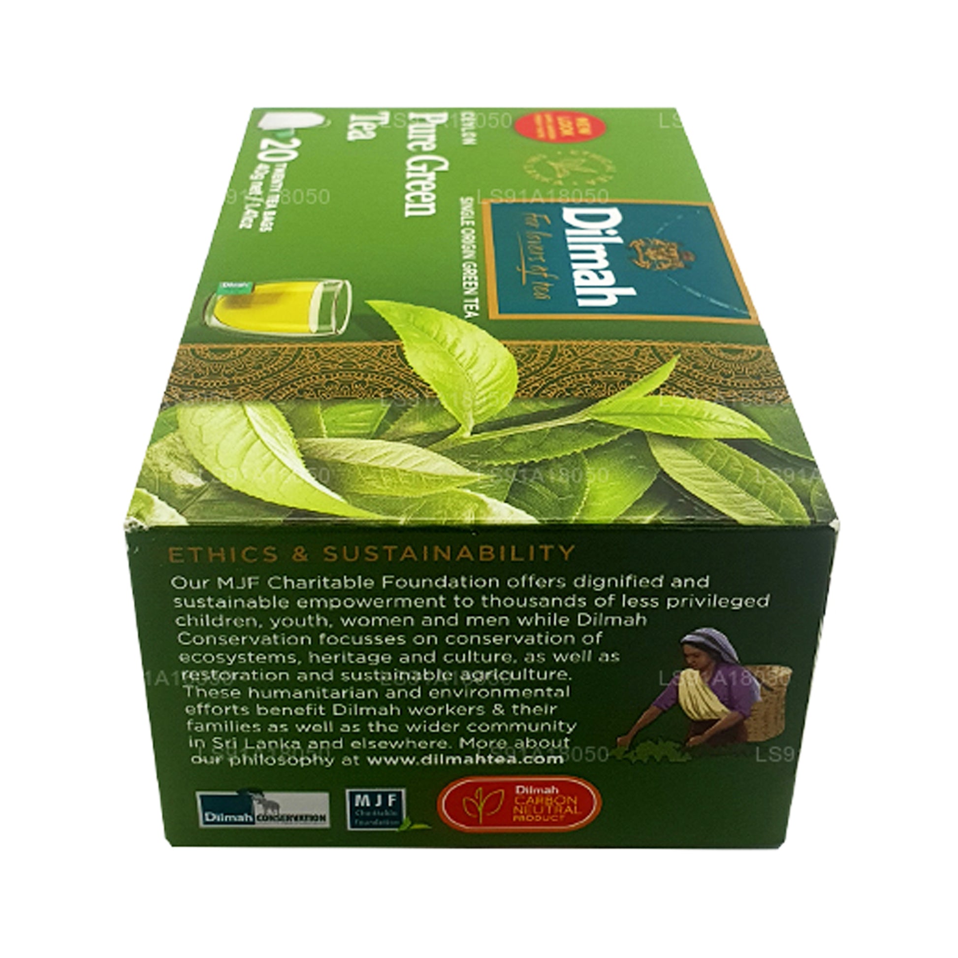 (SKU : LS91A18050) Les hauts plateaux du centre du Sri Lanka sont l'une des meilleures régions productrices de thé au monde, et le thé Dilmah est créé selon des méthodes durables et traditionnelles pour vous offrir le meilleur thé de Ceylan. Les feuilles de thé vert de Ceylan sont cueillies à la main afin de garantir des bienfaits naturels dans chaque tasse que vous dégustez. Le thé vert Dilmah Pure Ceylan est un thé vert de première qualité qui offre une saveur rafraîchissante et délicate avec de subtiles notes d'herbes. Il contient 20 sachets de thé emballés individuellement, ce qui le rend facile à