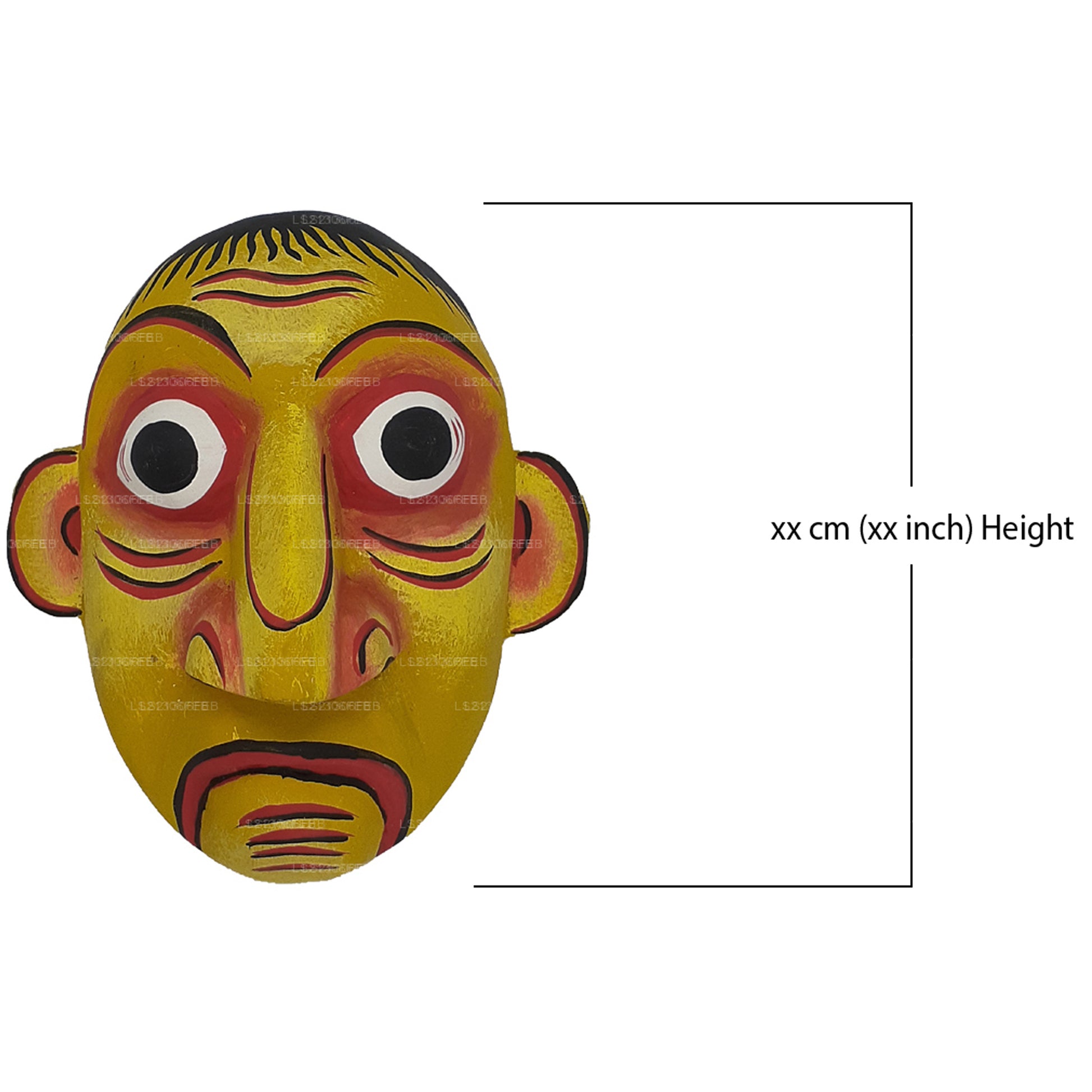 Gulma Sanniya est un masque rituel traditionnel sri lankais représentant le démon censé provoquer des maladies liées à l'estomac, telles que les ballonnements et les douleurs abdominales. Fabriqué à la main à partir de bois de Kaduru, le masque présente un visage jaune aux expressions exagérées (yeux exorbités, sourcils froncés et accents rouges) pour refléter l'inconfort et la maladie. Utilisé dans des rituels de guérison tels que Sanni Yakuma, il constitue à la fois un artefact culturel et un symbole de protection spirituelle