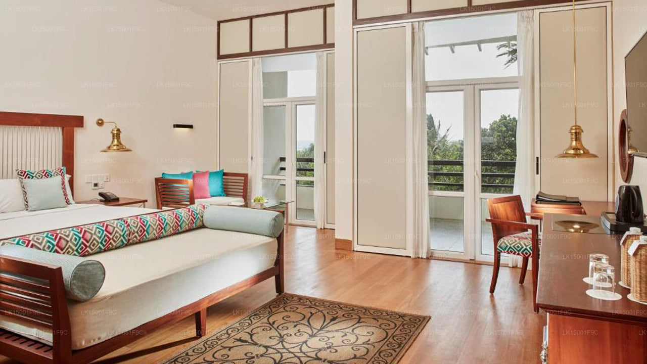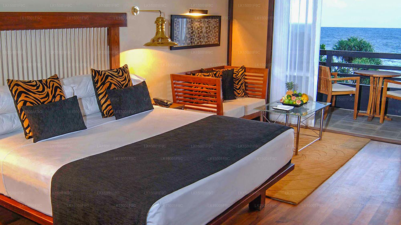 (SKU:LK15001F9C) Heritance Ahungalla Hotel, a luxury beach hotel at the fishing village of Ahungalla, close to Galle is a five star luxury property designed by Geoffrey Bawa, the master architect of Sri Lanka. Arrival at the luxury hotel to the open-plan lobby presents you all with a stunning long view of the infinity pool reaching all the way to the sea. The airy and spacious hotel is designed in such a way as to make the maximum off the natural light of the sunny beach at Heritance Ahungalla. The expansive wooded gardens of the hotel are well shaded from the tropical sun.
