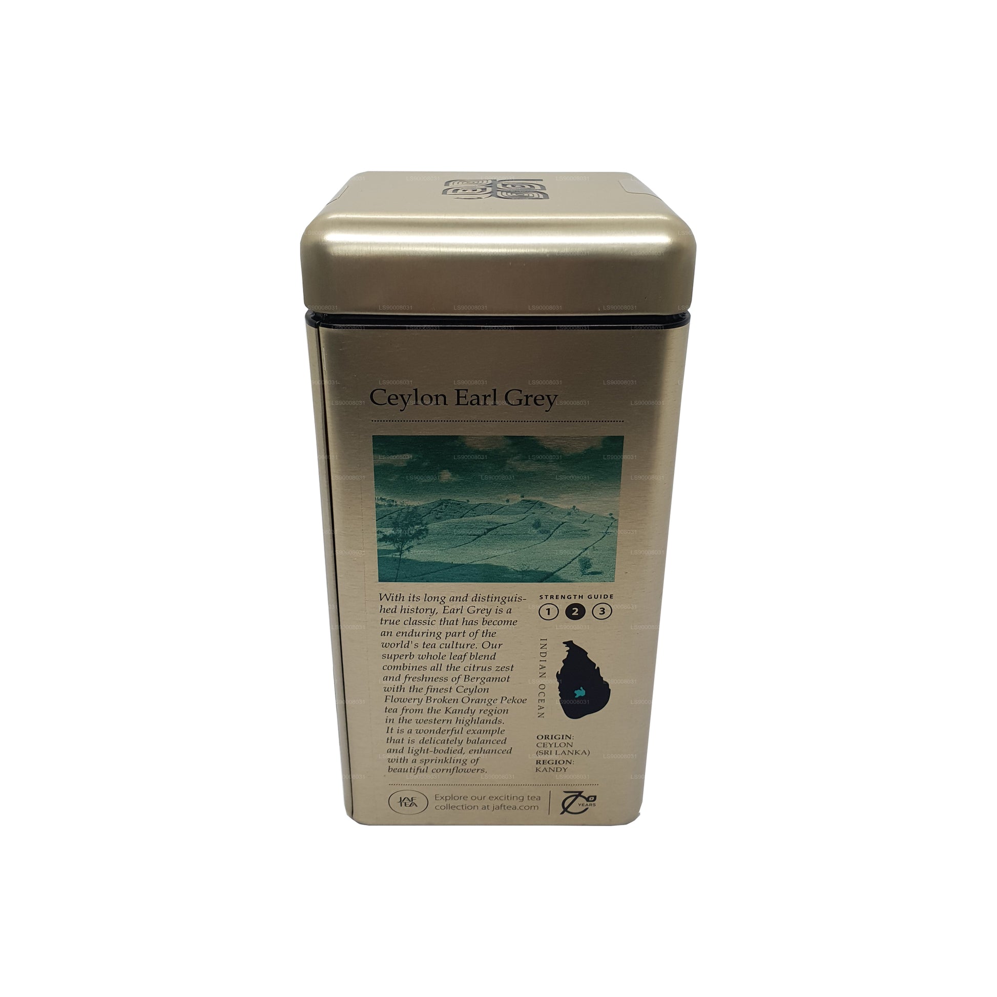 Jaf Tea Ceylon Earl Grey est un mélange de feuilles entières de première qualité élaboré avec le meilleur thé FBOP de Ceylan de la région de Kandy, infusé avec le zeste d'agrumes de la bergamote pour un arôme et une saveur rafraîchissants. Rehaussé par des thés délicats des hautes terres de Dimbulla et une pincée de bleuets pour plus d'élégance, ce mélange offre une tasse de thé légère, aromatique et équilibrée. Inspiré par la tradition intemporelle nommée d'après un Premier ministre britannique du XIXe siècle, il propose une expérience de thé apaisante mais revigorante qui reflète la qualité, la pureté et l'authentique héritage du thé de Ceylan