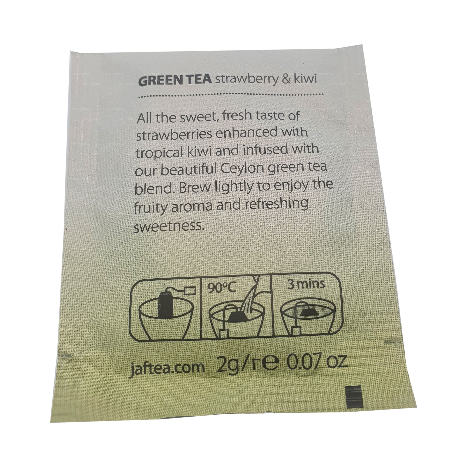 Thé vert à la fraise et au kiwi : Tout le goût doux et frais des fraises rehaussé de kiwis tropicaux et infusé de notre magnifique mélange de thé vert de Ceylan. Infusez légèrement pour profiter de l'arôme fruité et de la douceur rafraîchissante.