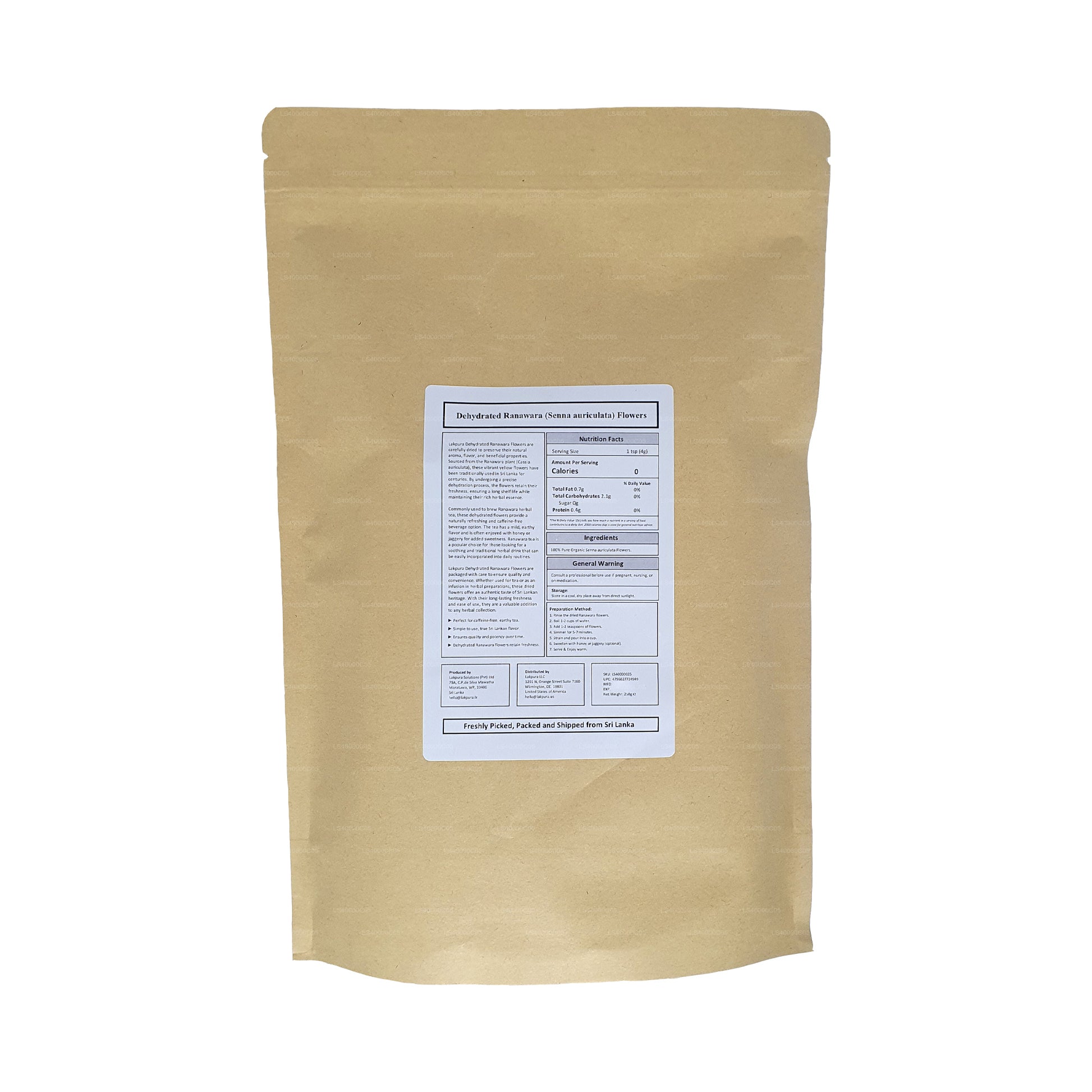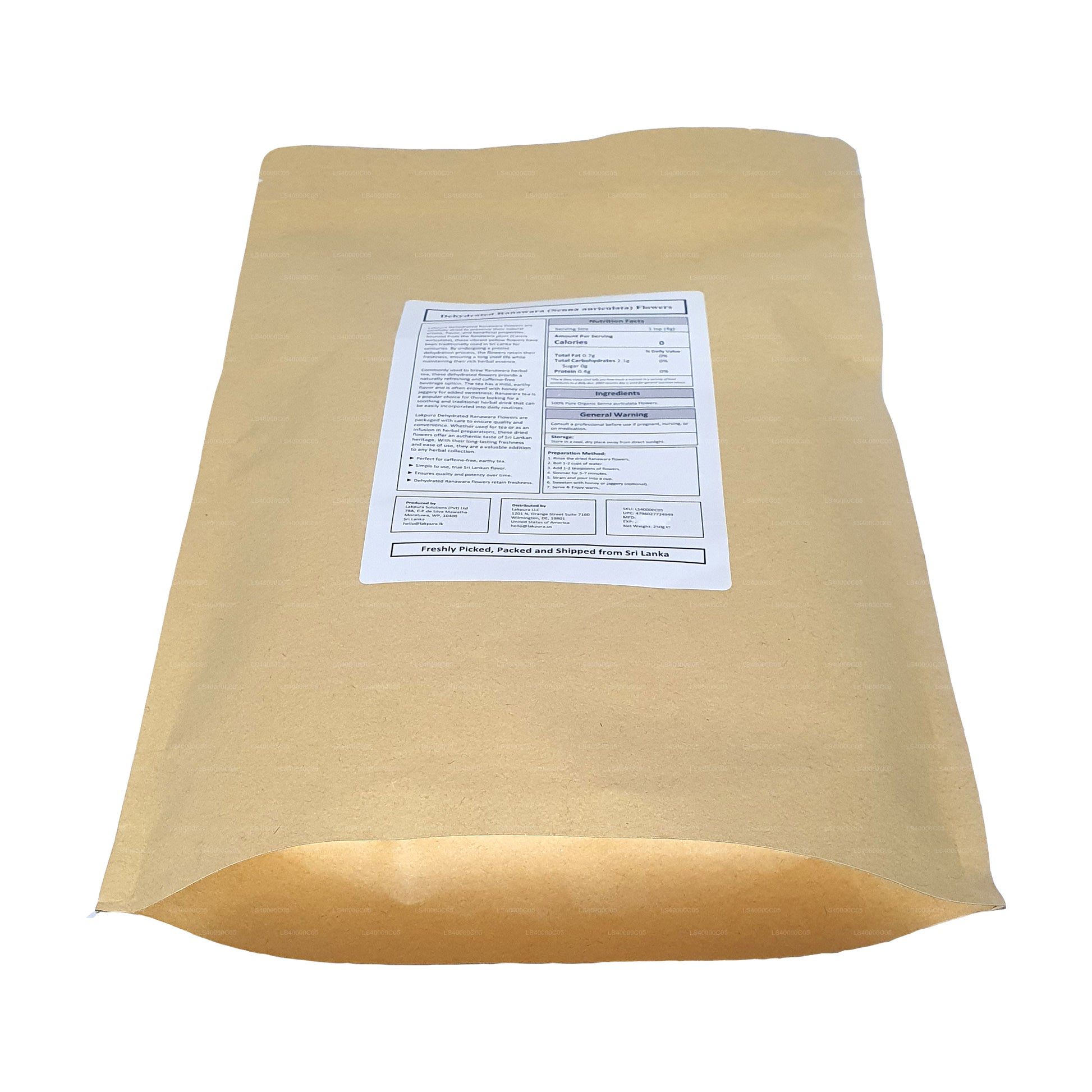 (SKU : LS4000E6A2) Notre assortiment de plantes Ranawara cultivées sur place sans pesticides est un remède à base de plantes depuis des siècles et est également utilisé pour améliorer le teint de la peau. Les cinq parties du Ranawara, à savoir l'écorce, les racines, les fleurs, les feuilles et les graines, sont encore utilisées dans la médecine indigène du Sri Lanka, en particulier lorsqu'il s'agit de maladies des voies urinaires, du système digestif, des rhumatismes, du diabète, de la conjonctivite et de l'ophtalmie.