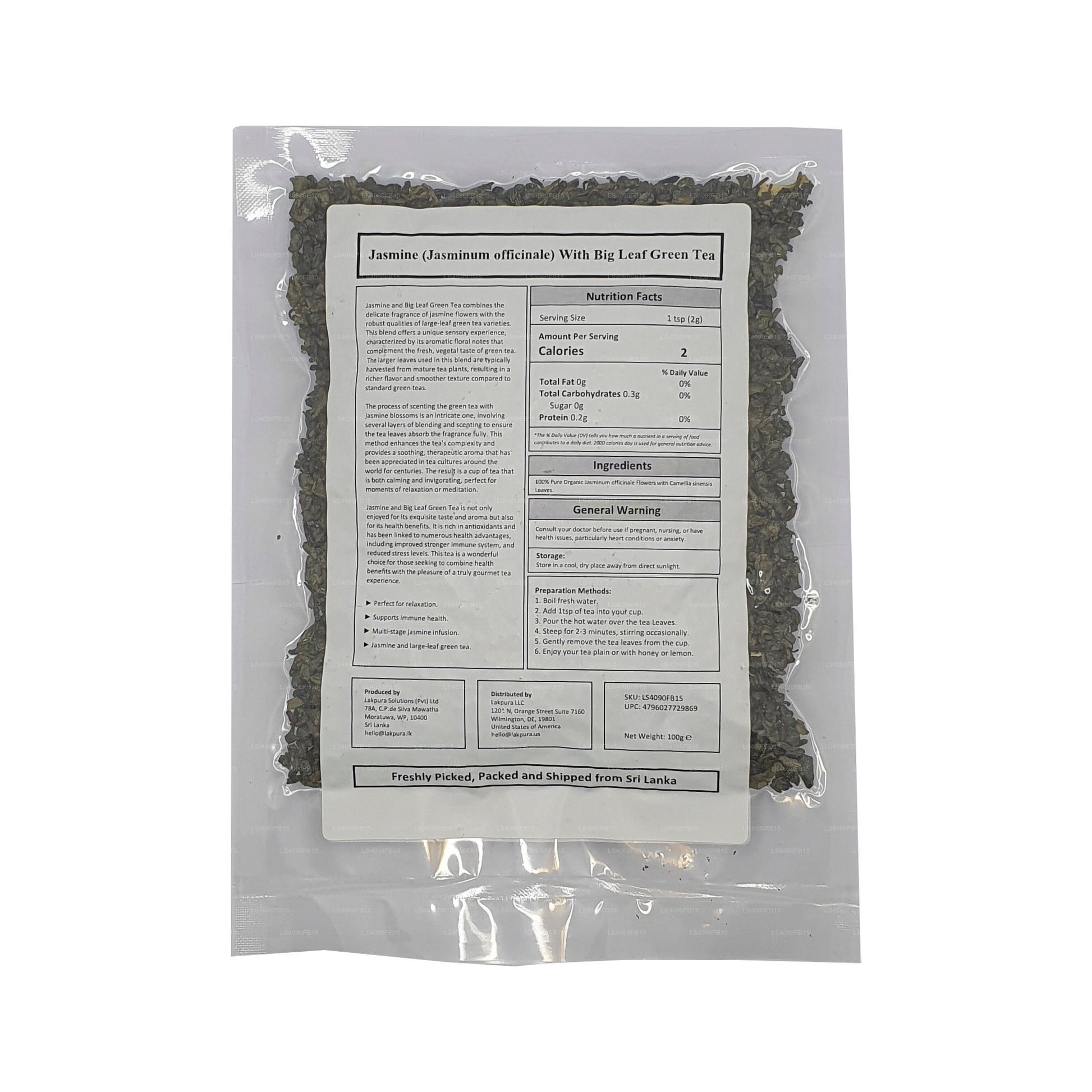 Thé vert Lakpura au jasmin et aux grandes feuilles (100g)