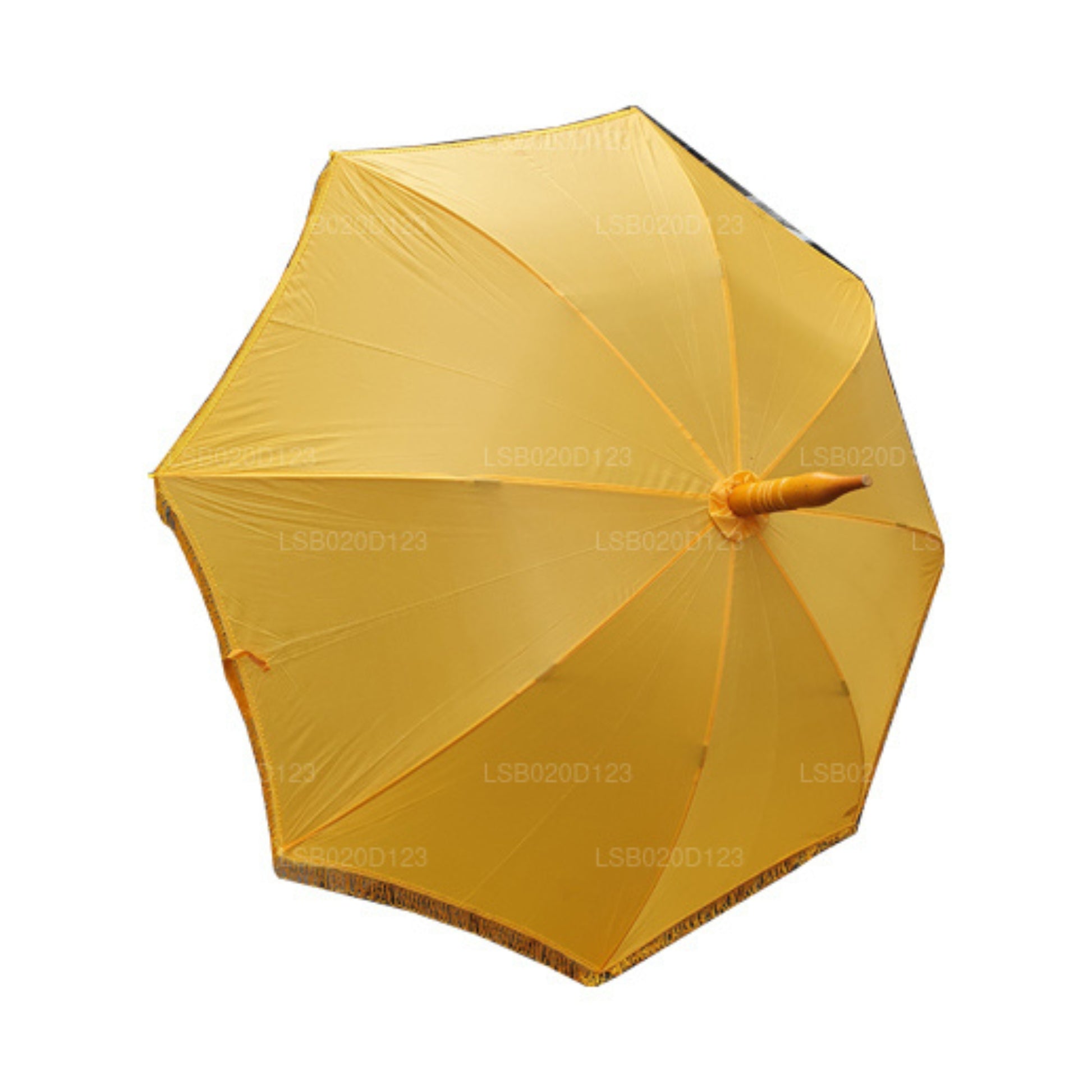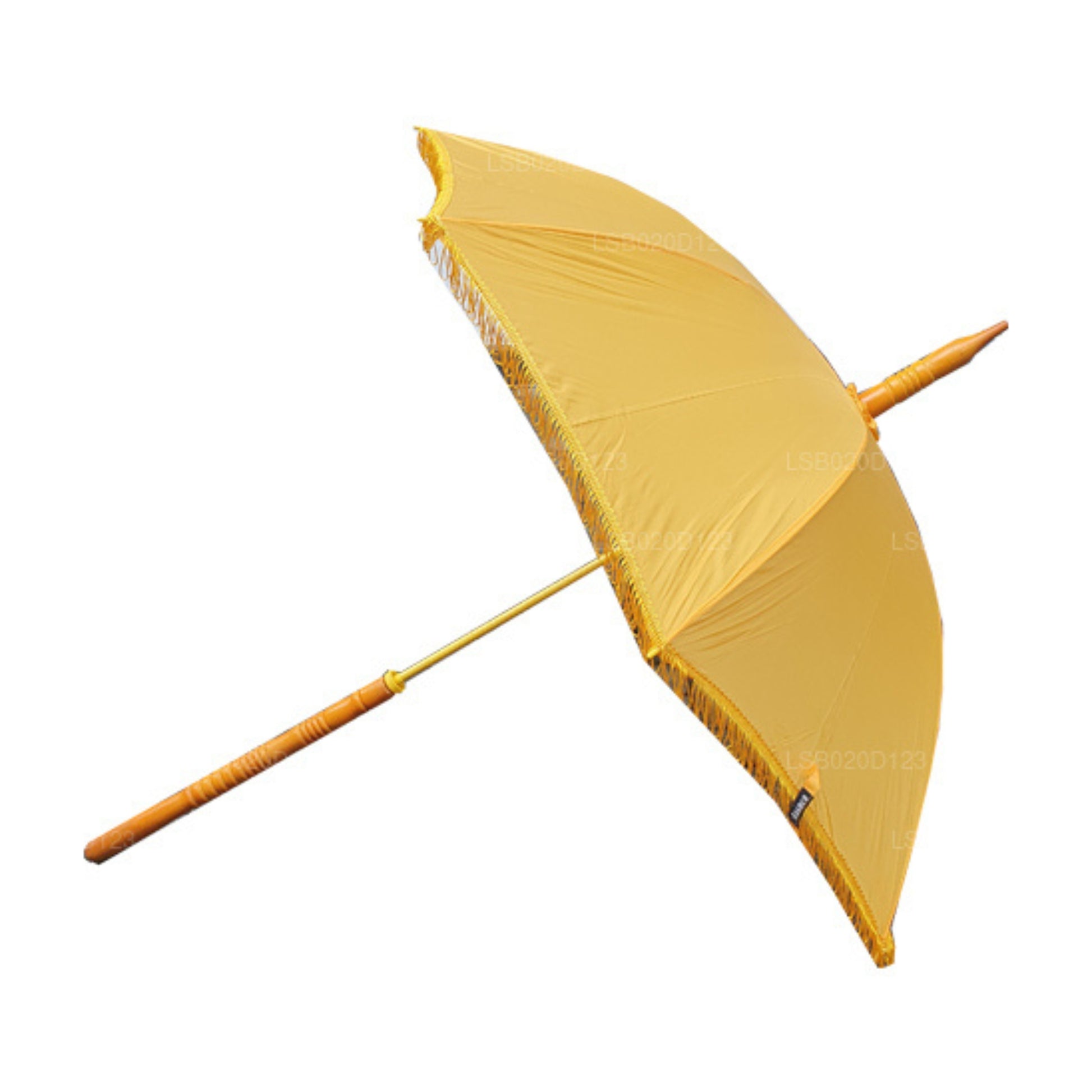 (SKU : LSB0202C9F) L'objectif le plus courant d'un parapluie est de protéger les gens du soleil ou de la pluie. Cependant, il existe diverses explications dans de nombreuses cultures concernant l'utilisation des parapluies. Le Lakpura « Muthu Kuda » est spécifiquement utilisé pour protéger les moines bouddhistes des divers effets de la nature. Des motifs simples sont disponibles tandis que certains sont brodés avec des pagodes triples