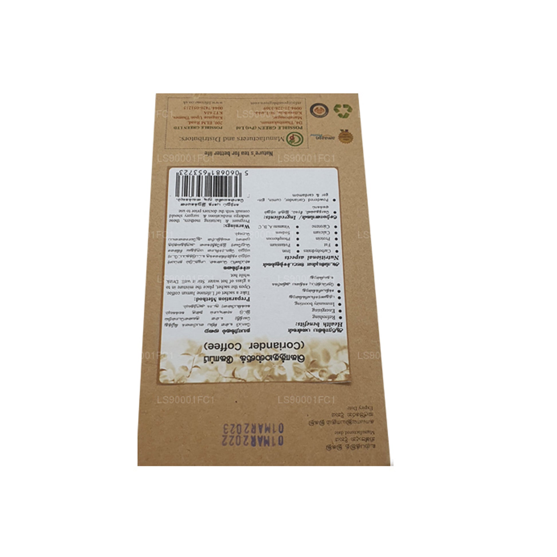 Chaque paquet contient 20 sachets pratiques, faciles à préparer et à déguster à tout moment. Il suffit de mélanger le contenu d'un sachet avec de l'eau chaude, de bien remuer et de boire chaud. Enrichi d'ingrédients tels que la coriandre, le cumin, le gingembre et la cardamome, le café aux graines de coriandre Lifetone offre une boisson apaisante et énergisante qui contribue au bien-être général tout en procurant un agréable goût d'herbes.