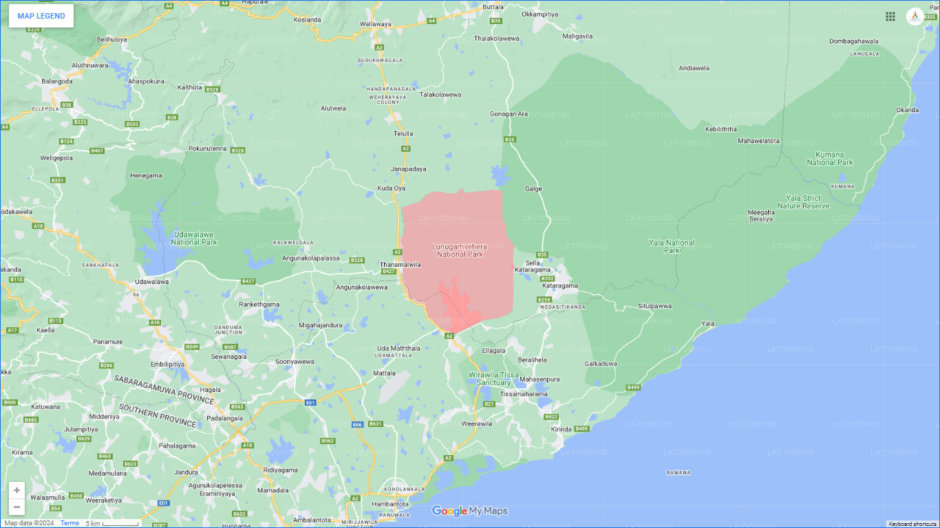 Lunugamvehera National Park, located in the Southern Province of Sri Lanka, serves as a vital habitat for wildlife and a crucial elephant corridor between Yala and Udawalawe National Parks. The park is home to a variety of animals, including elephants, leopards, deer, and numerous bird species. Its diverse ecosystems, featuring dry forests, grasslands, and wetlands, make it a haven for nature enthusiasts and wildlife photographers.