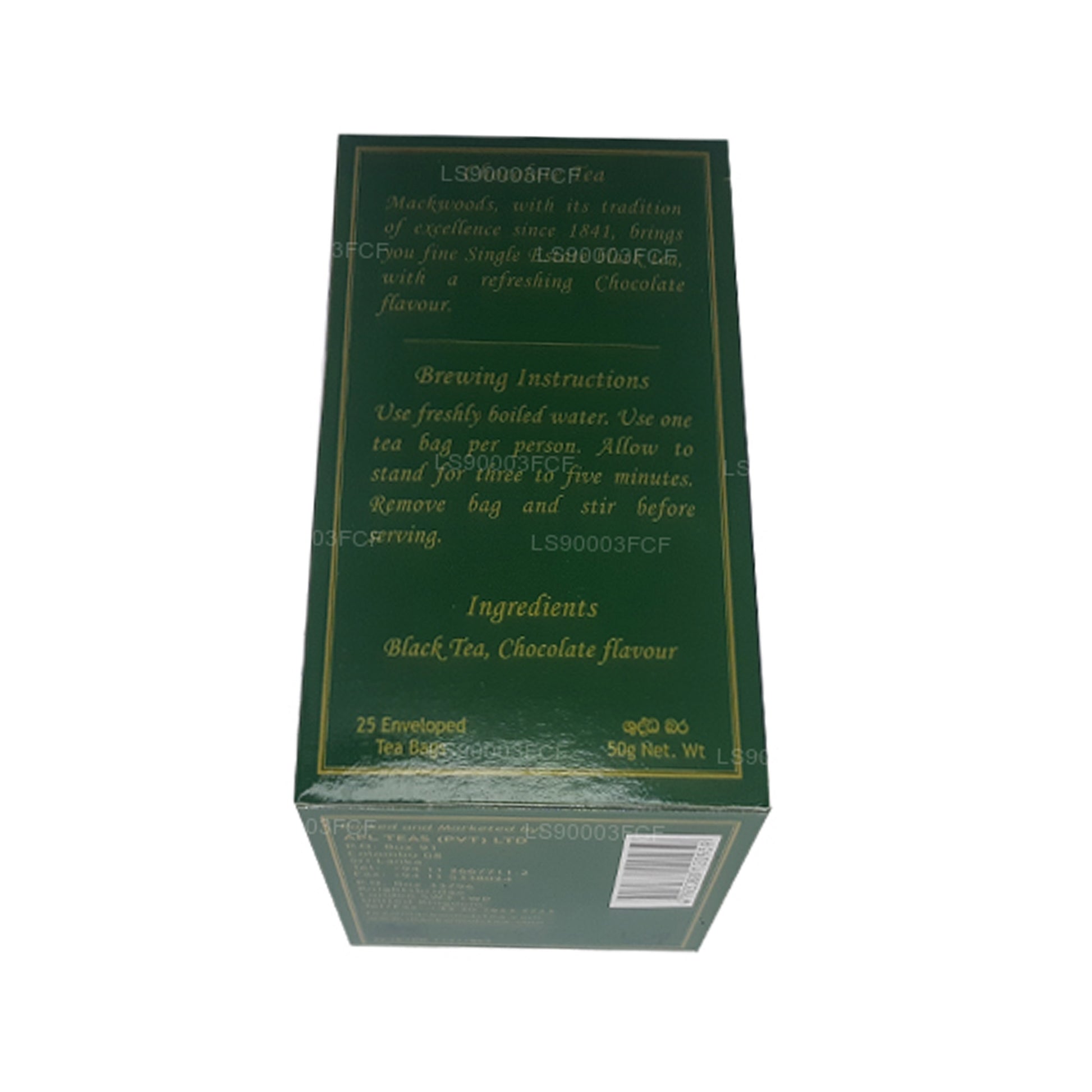 Thé noir de Ceylan aromatisé au chocolat Mackwoods Single Estate (50 g) 25 sachets de thé