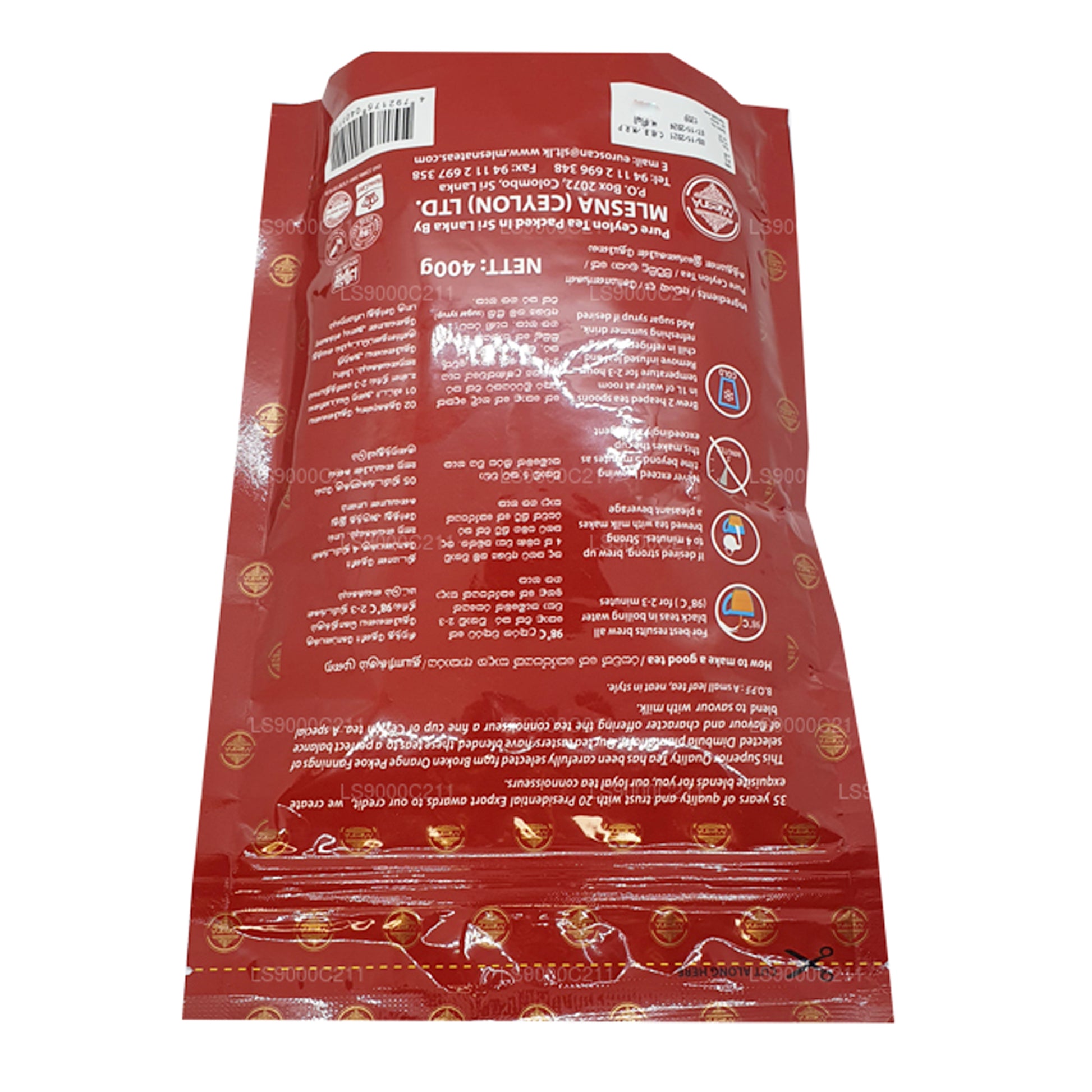 (SKU : LS9000C211) Les meilleurs thés de Ceylan, produits par Broken Orange Pekoe Fannings (BOPF) et provenant de jardins de thé sélectionnés, sont combinés pour leur force, leur saveur, leur richesse et leur goût. Vous pourrez ainsi déguster une tasse de thé fort à déguster avec du lait ; une façon idéale de commencer la journée.