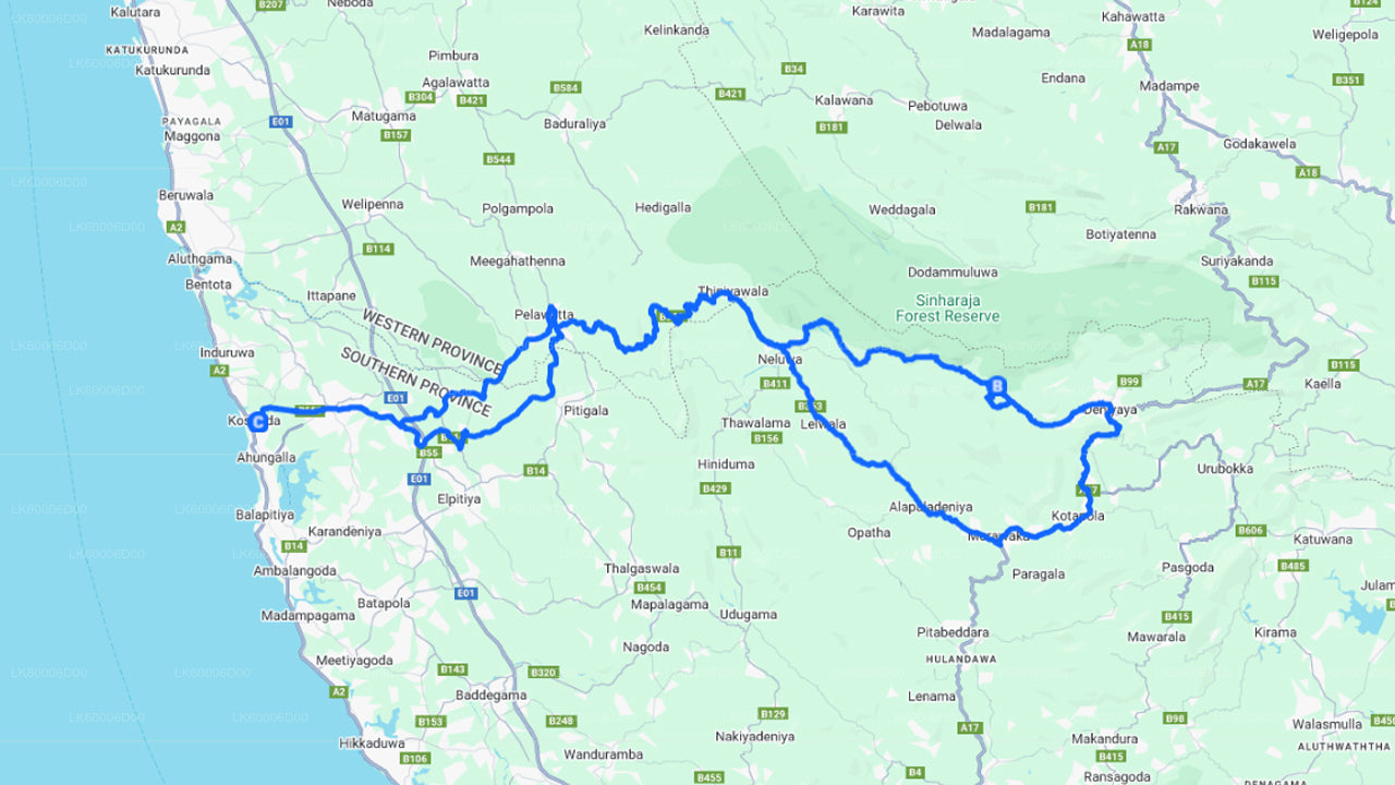 Votre expérience guidée commencera à votre hôtel à Kosgoda, où notre chauffeur anglophone / guide viendra vous chercher à 6h00 du matin dans un véhicule climatisé. Le trajet de Kosgoda à Sinharaja dure environ 2 heures ou un peu plus. Il est recommandé d’apporter un petit-déjeuner emballé, sans arrêt en cours de route.