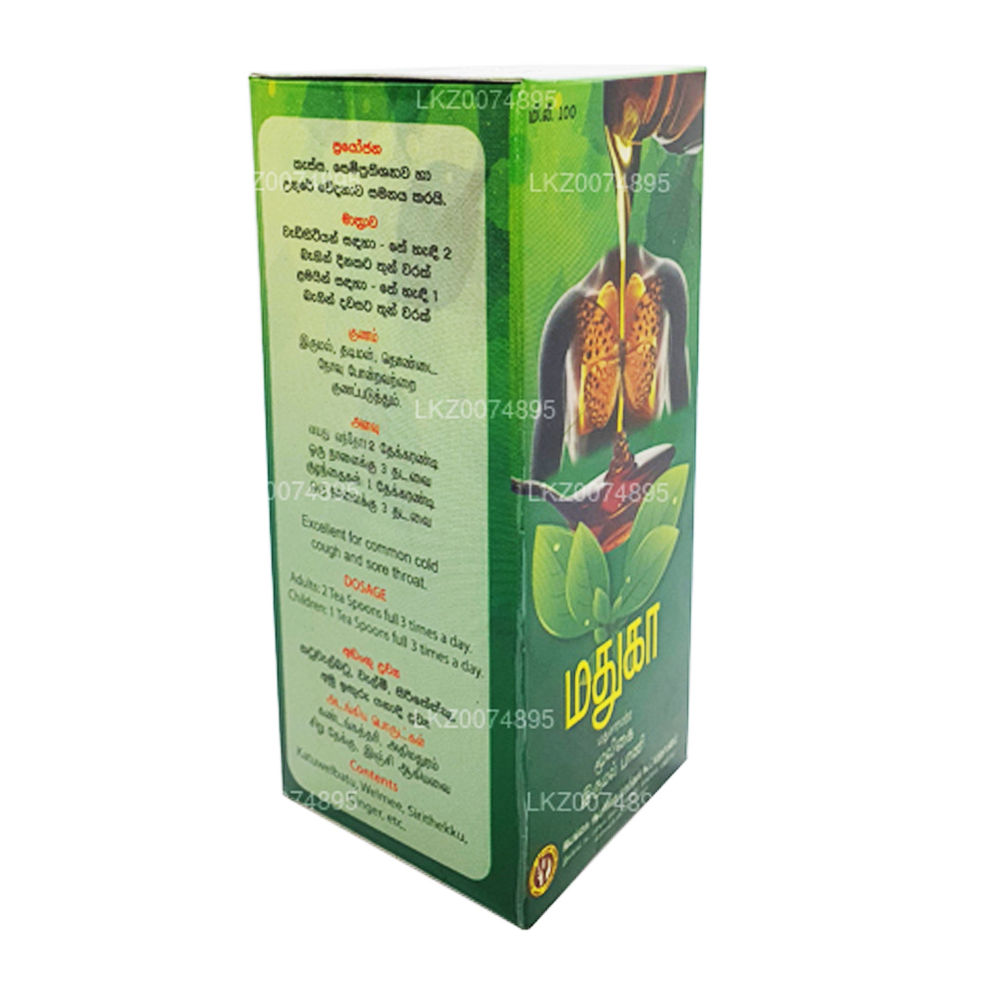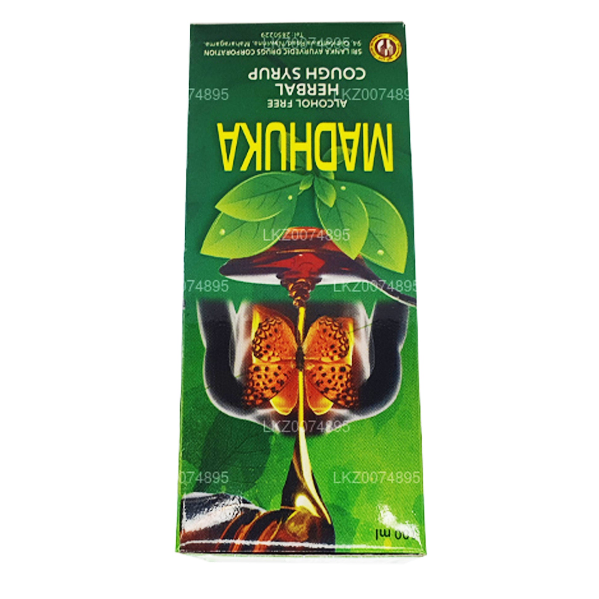 (SKU : LKZ0074895) Sirop contre la toux aux herbes Madhuka (sans alcool) 100 ml, un produit de Ayurvedic Drugs Corporation.
