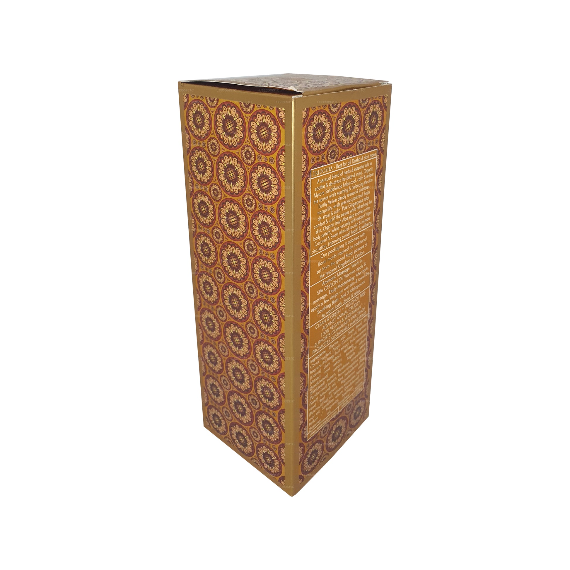 (SKU : LS8050931C) Un mélange sensuel d'herbes et d'huiles essentielles hydrate et déstresse le corps et l'esprit. Le bois de santal biologique de Mysore aide à rafraîchir, à calmer et à soulager les sens tout en apaisant et en équilibrant la peau. Le vétiver terreux détend profondément et favorise la tranquillité, tandis que le précieux patchouli aide à déstresser et à calmer. Le gingembre pur aide à réconforter et à stimuler les sens tout en rafraîchissant la peau. L'aloe vera frais biologique hydrate tout le système corporel, tandis que la noix de coco vierge et l'amande douce naturellement antioxydantes nourrissent et augmentent la circulation sanguine, améliorant ainsi la santé et le bien-être en général.