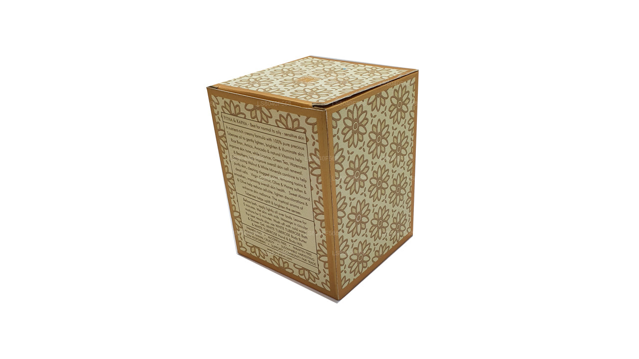 (SKU: LS8040E559) A nutrient-rich creamy formula with 100% pure precious Tuberose oil to gently lighten, brighten & illuminate skin. Rice Bran, Arnica, Avocado & natural Vitamins help improve skin tone, while Licorice, Green Tea, Watercress & Bearberry help improve overall skin cell renewal. Deep-acting Neem, Walnut & White Minerals combine to help purify skin, clearing clogged pores, removing toxins & dead cells. Virgin Coconut, Olive & Honey soften & smoothen, improving overall skin health. Sweet Almond & Olive help reduce cellulite, lighten discolorations & enhance skin radiance. The mystical aroma of Tuberose helps uplift & brighten the senses.