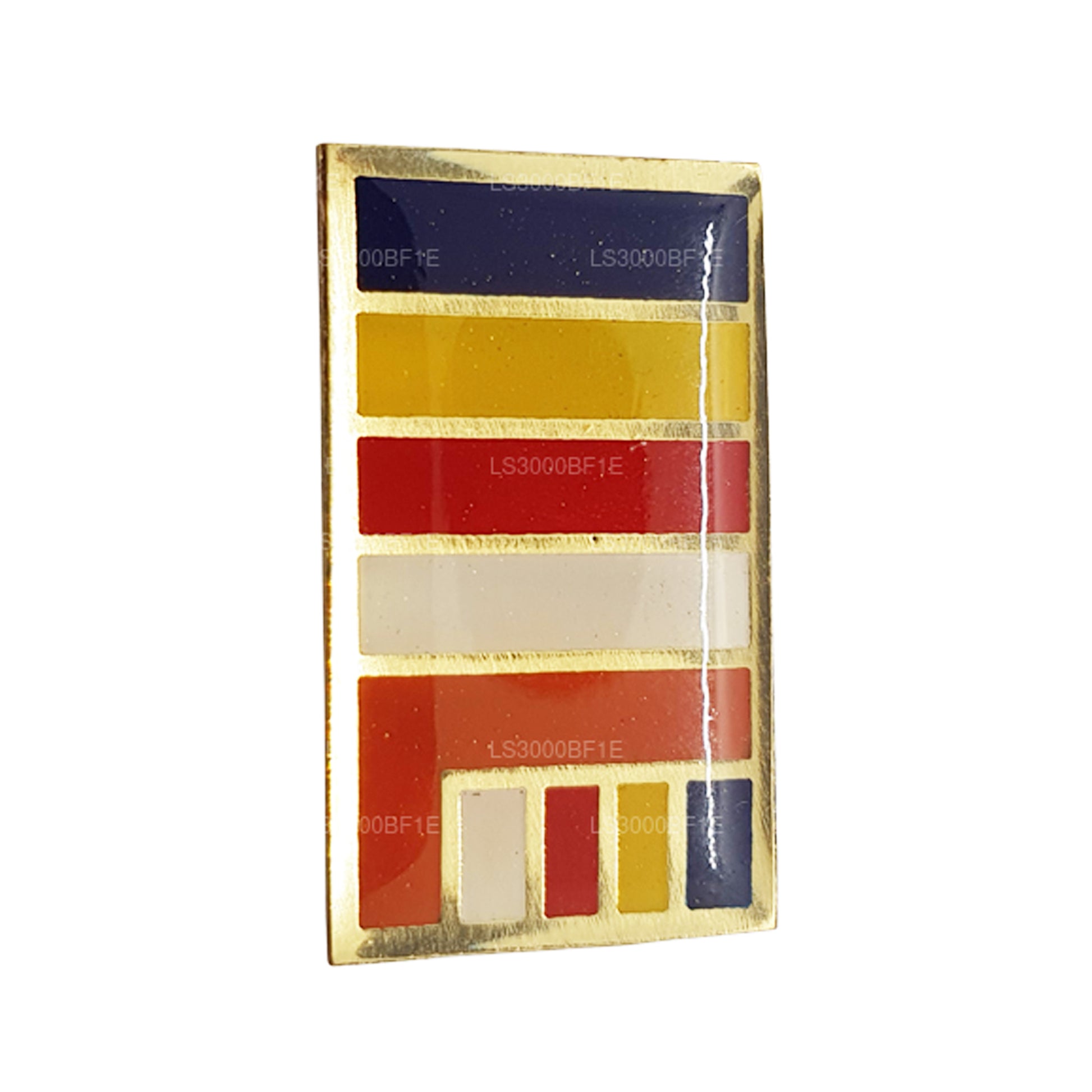 The Sri Lankan Buddhist Flag Lapel Pin is a small accessory that represents the national flag of Sri Lanka with a Buddhist influence. It features vibrant colors such as orange, yellow, and maroon, symbolizing wisdom, purity, and courage respectively. The lapel pin is crafted with precision using materials like enamel or metal alloys. It is worn on clothing as a subtle expression of religious and cultural identity. The pin is popular among Buddhists, tourists, and those interested in Sri Lankan culture, serving as a reminder of the country's Buddhist heritage. It symbolizes spirituality, unity, and pride, reflecting the enduring legacy of Buddhism in Sri Lanka.