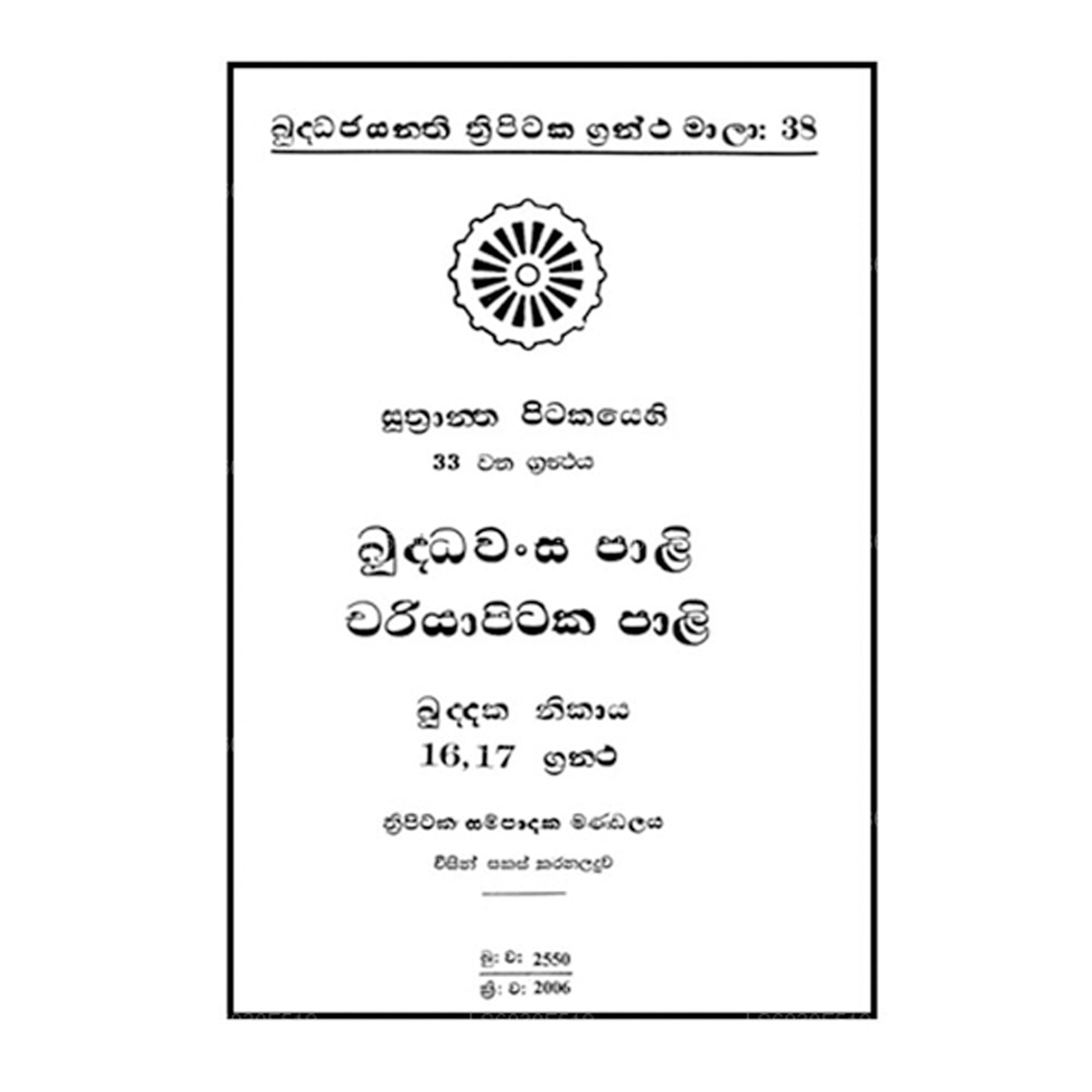 Suthra Pitakaya - Buddhawansa Pali - Chariyapitaka Pali