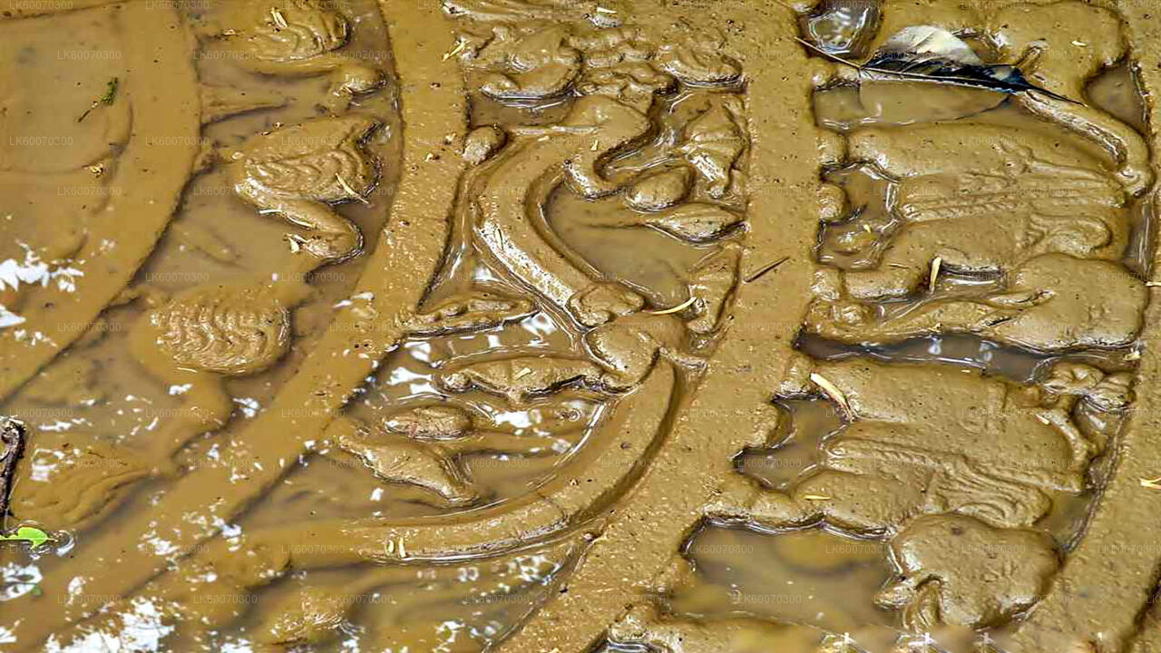 Continue on to the Lahugala Kotavehera with its flattened stone temple and ruins of fallen monoliths, flower alters and more. Take a short walk down towards Lahugala to reach Magul Maha Temple, which is believed to have been built by King Dhatusena and refurbished by many following kings. Note the interesting ruins of the Magul maduwa (place where the bo tree was planted), the image house with its paintings, ancient sthupa, and the unique moon stone with mahouts on the elephants' backs.
