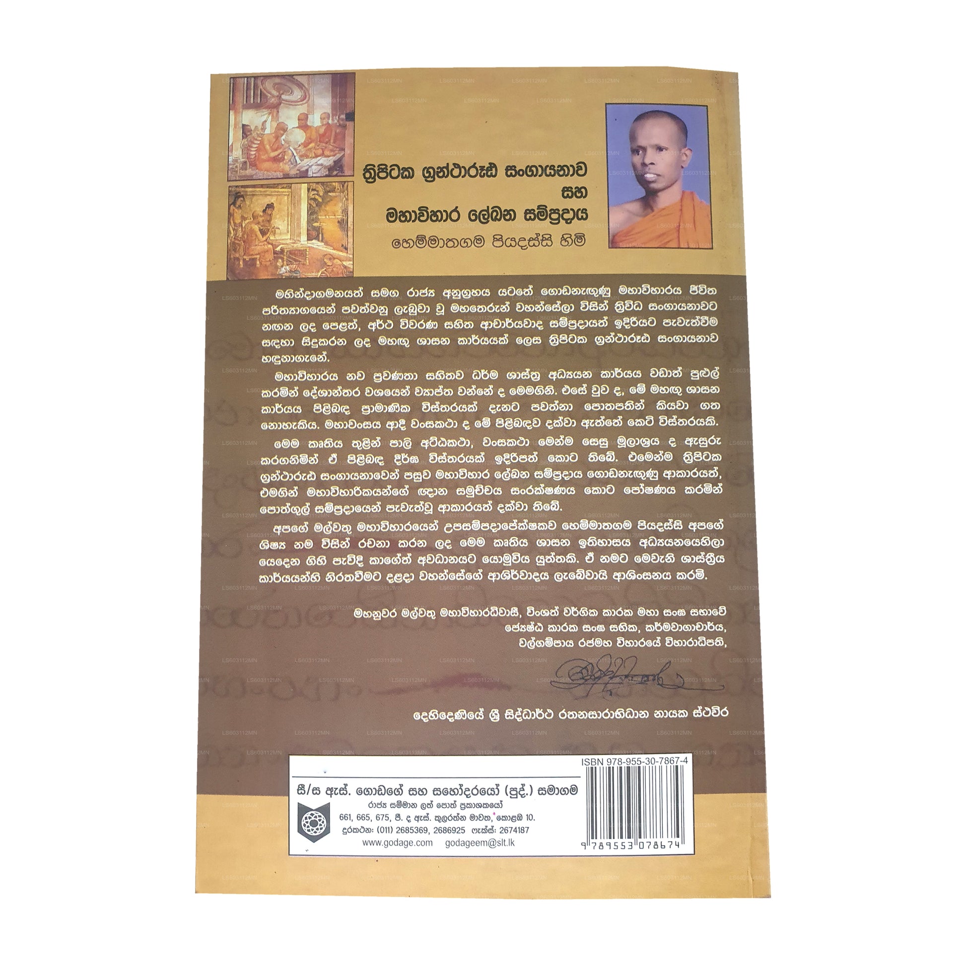 | Description | Thripitaka Grantharuda Sangayanawa Saha Mahawihaara Lekhana Sampradaya by Hemmathagama Piyadassi Himi |