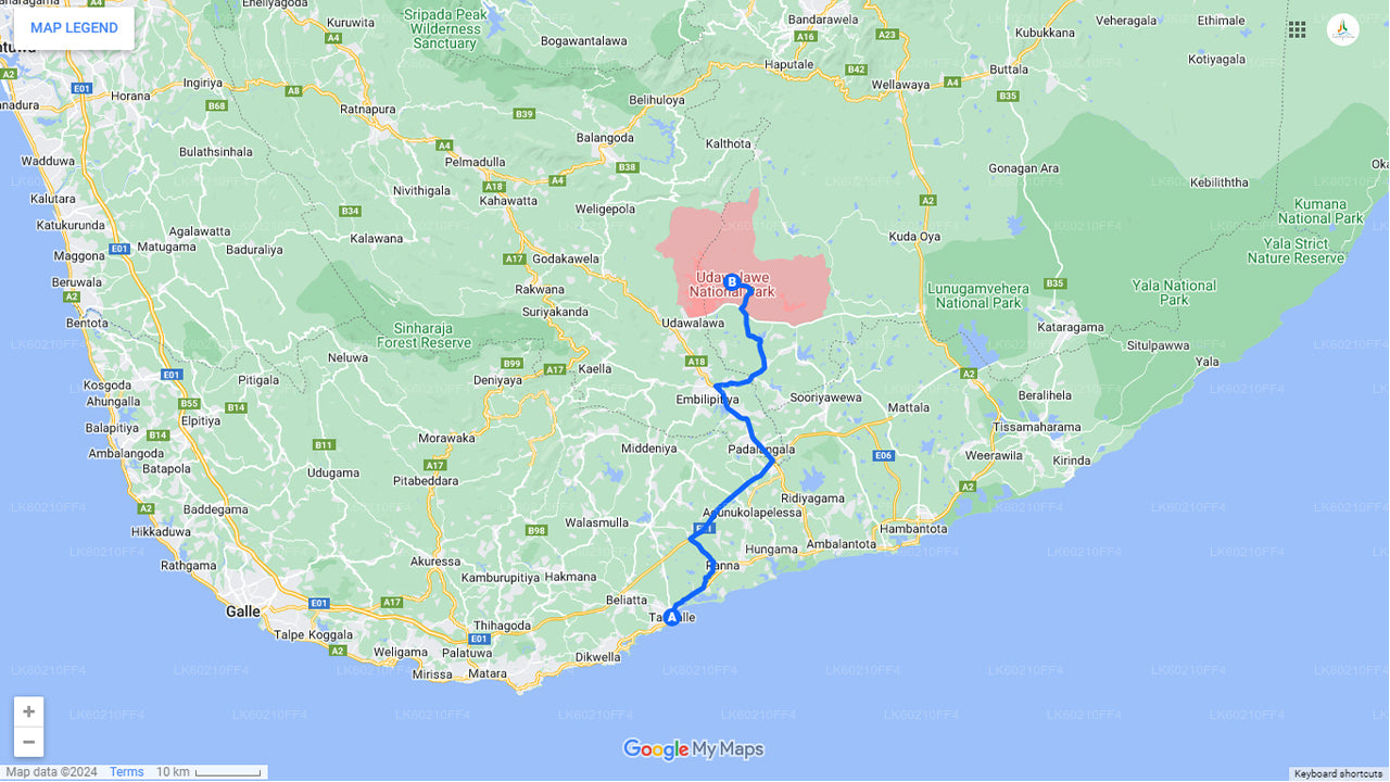 Vous commencerez votre visite depuis Tangalle à 12h00. Votre chauffeur viendra vous chercher à votre hôtel et vous conduira à Udawalawe. Vous atteindrez l'Udawalawe à 13 h 30.